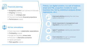 While Finbox originated from regulatory requirements, financial institutions have quickly made it a major financial and strategic steering tool to inform business decision-making. In addition to using the platform for regulatory stress testing, some major banking groups use it for internal scenario analysis and budgeting purposes, with a tendency towards more sophisticated uses (e.g. embedding advanced mathematical and statistical modelling techniques in the calculation processes)